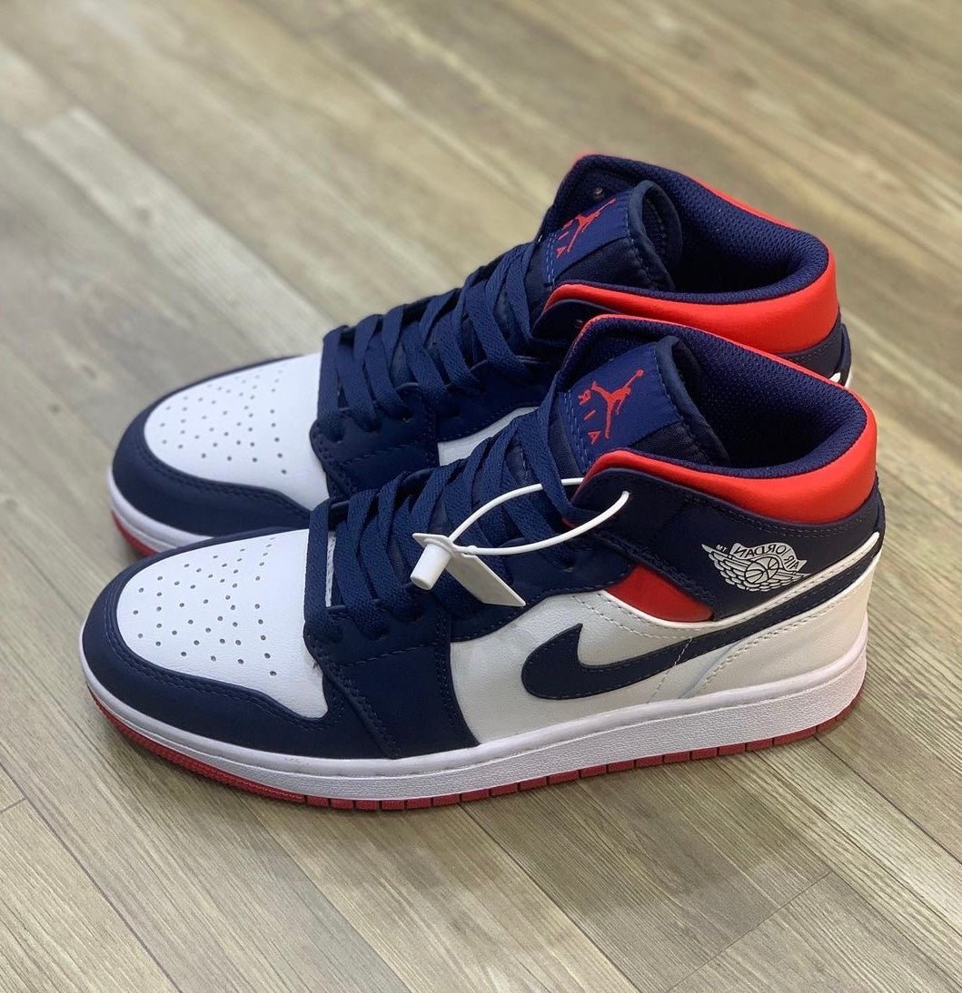 Aprimore seu estilo e bom gosto com o tênis Air Jordan 1 Mid SE USA. Com uma combinação super estilosa de cores, esse tênis apresenta parte superior em couro branco, com detalhes em vermelho e marinho. Seja para o dia a dia ou sair com os amigos, você vai se destacar em grande estilo. Inspirado no AJ1 original, essa edição mantém o visual icônico da linha lançada em 1985. Conhecido por seu design de cano médio, oferece uma combinação equilibrada entre estilo e funcionalidade.
